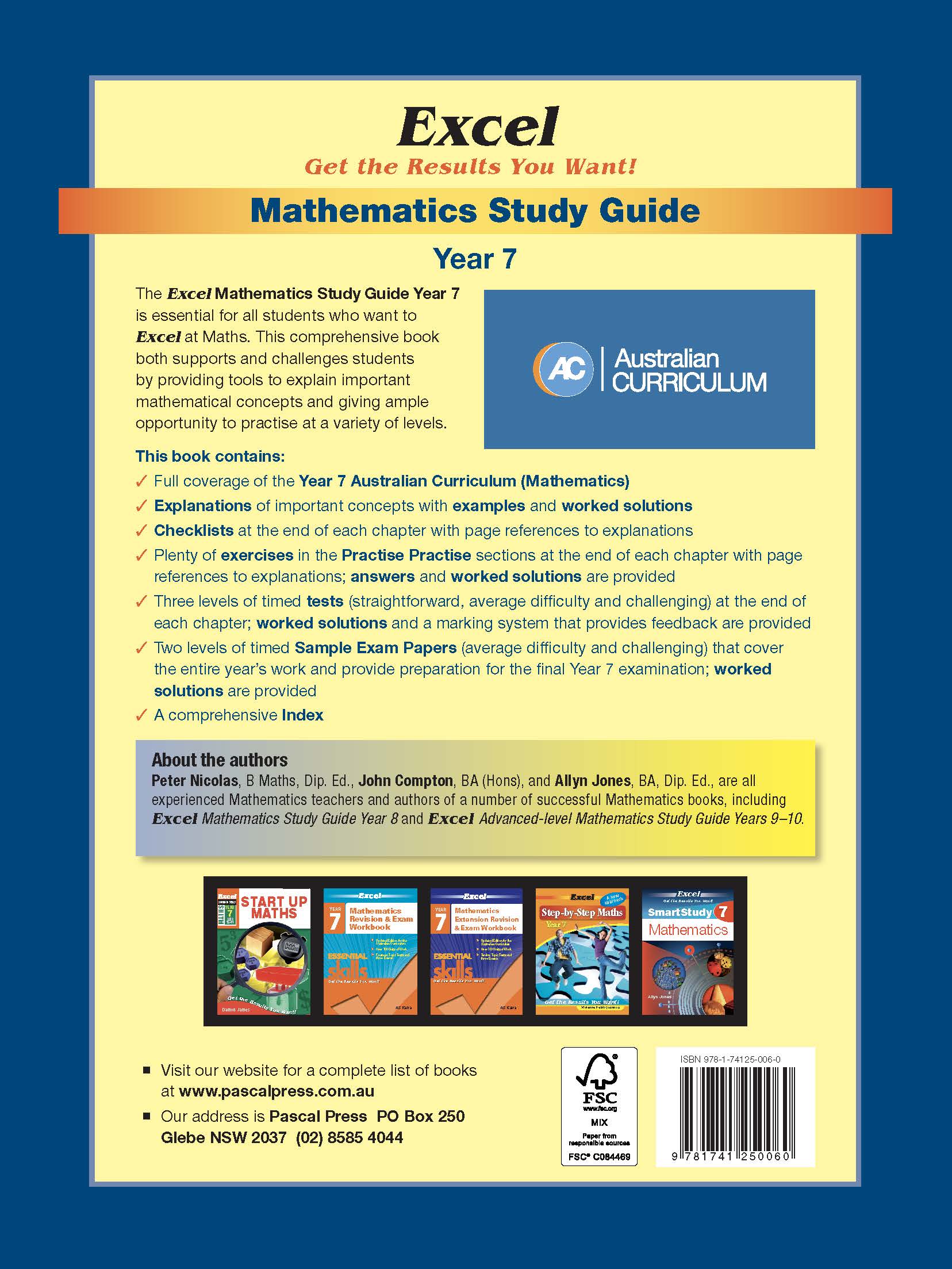 This Excel Mathematics Study Guide is essential for all students studying Year 7 Mathematics as a comprehensive guide to the topics covered at this level. It provides tools to explain important mathematical concepts and gives ample opportunity to practise at a variety of levels.