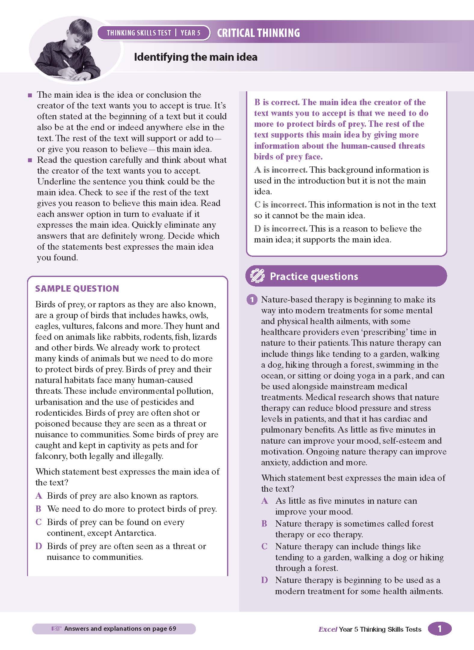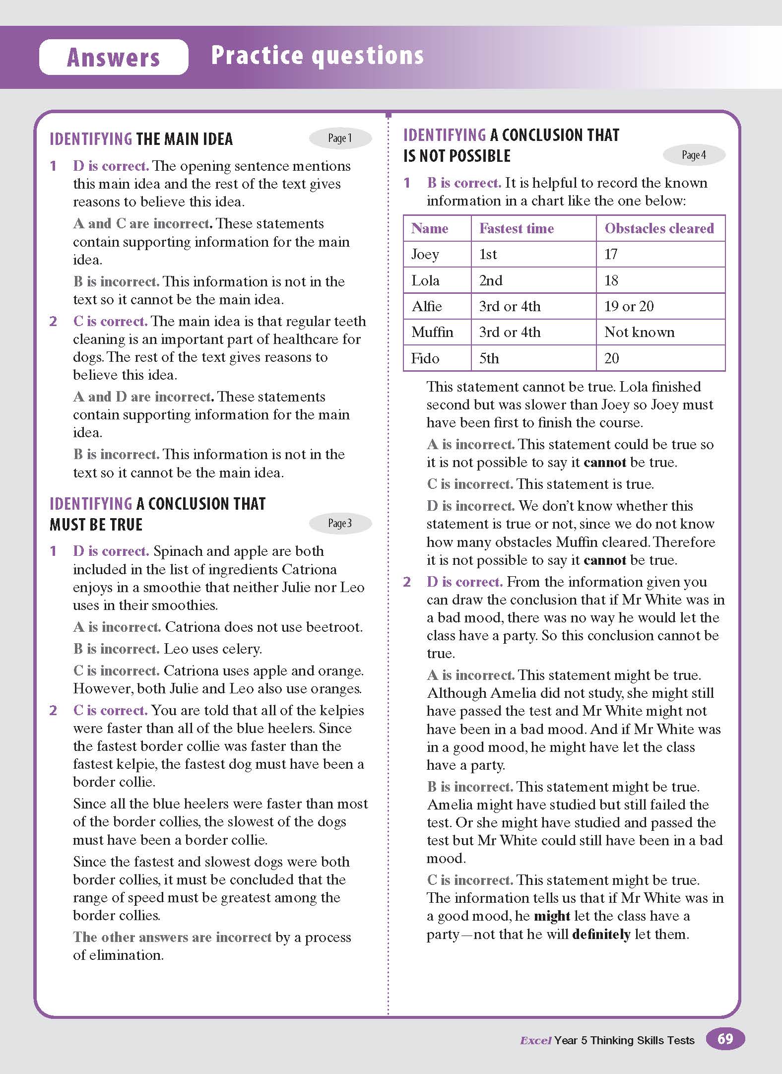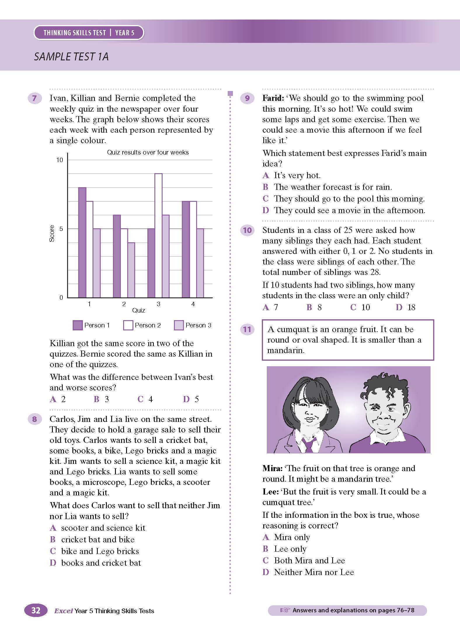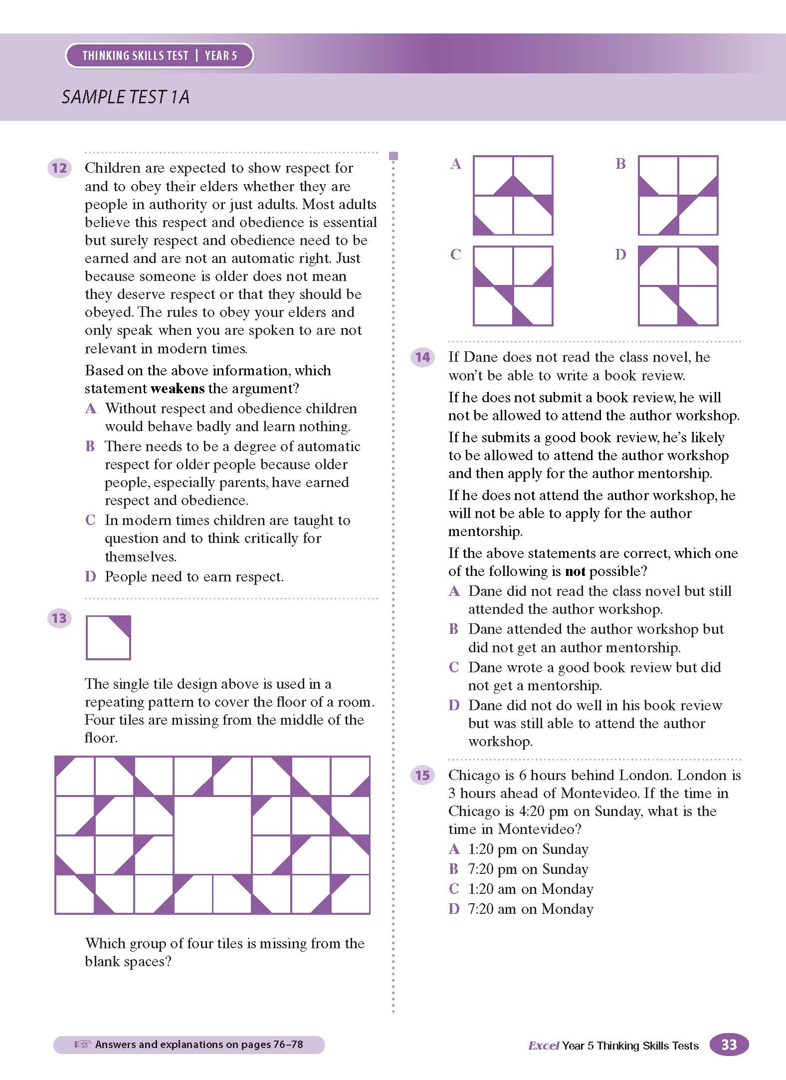 Excel Excel Test Skills - Thinking Skills Tests Year 5 is designed to help students feel more confident in taking Thinking Skills Tests, which are tests in the Year 6 NSW Selective High School Placement Test, and to enable them to learn the necessary skills required to answer each type of question. It will also help support students with general practice of critical-thinking and problem-solving skills.