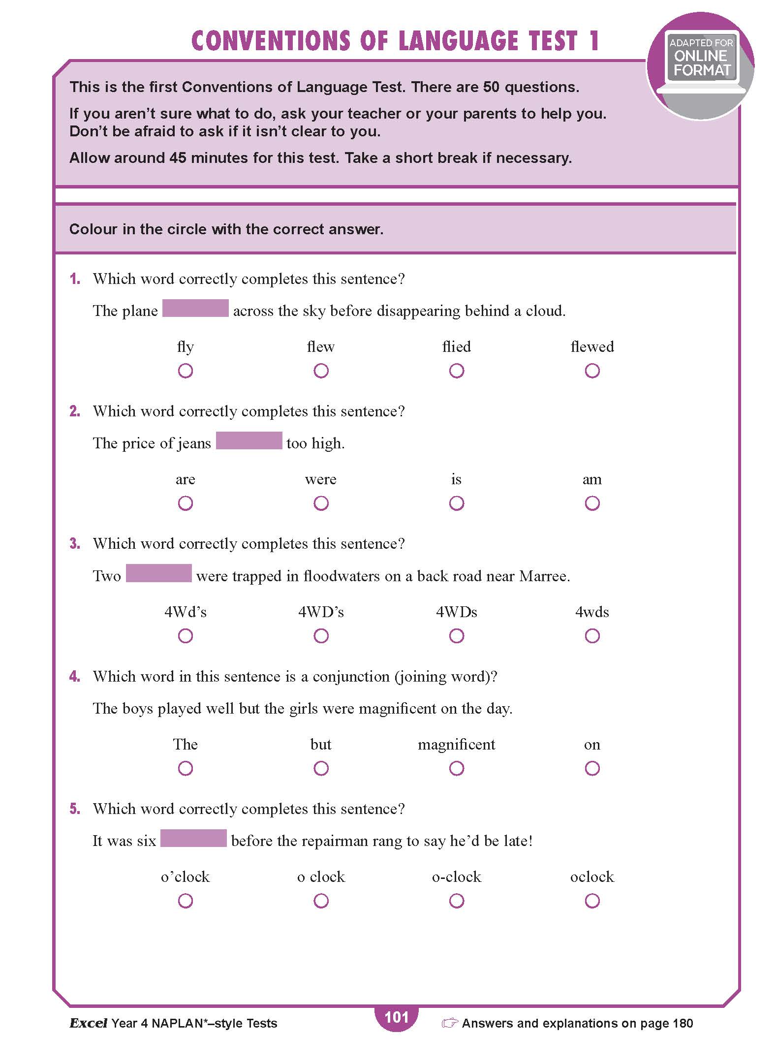 Support your child with complementary Online Practice Tests for Year 4 from Excel Test Zone, Australia's number one online practice site! Your child will become familiar with the NAPLAN Online format with hundreds of questions to practise and detailed answers and explanations for every question!