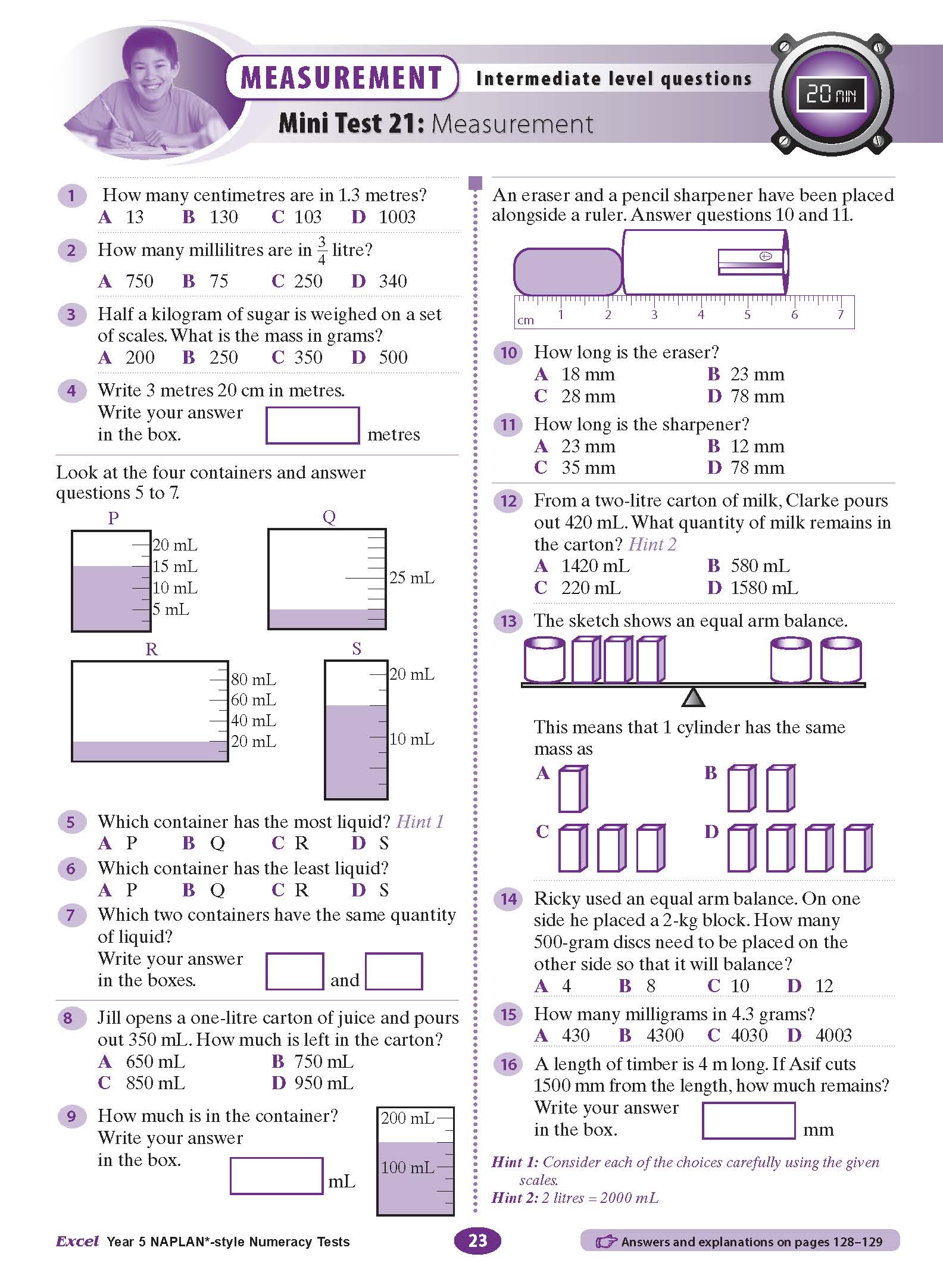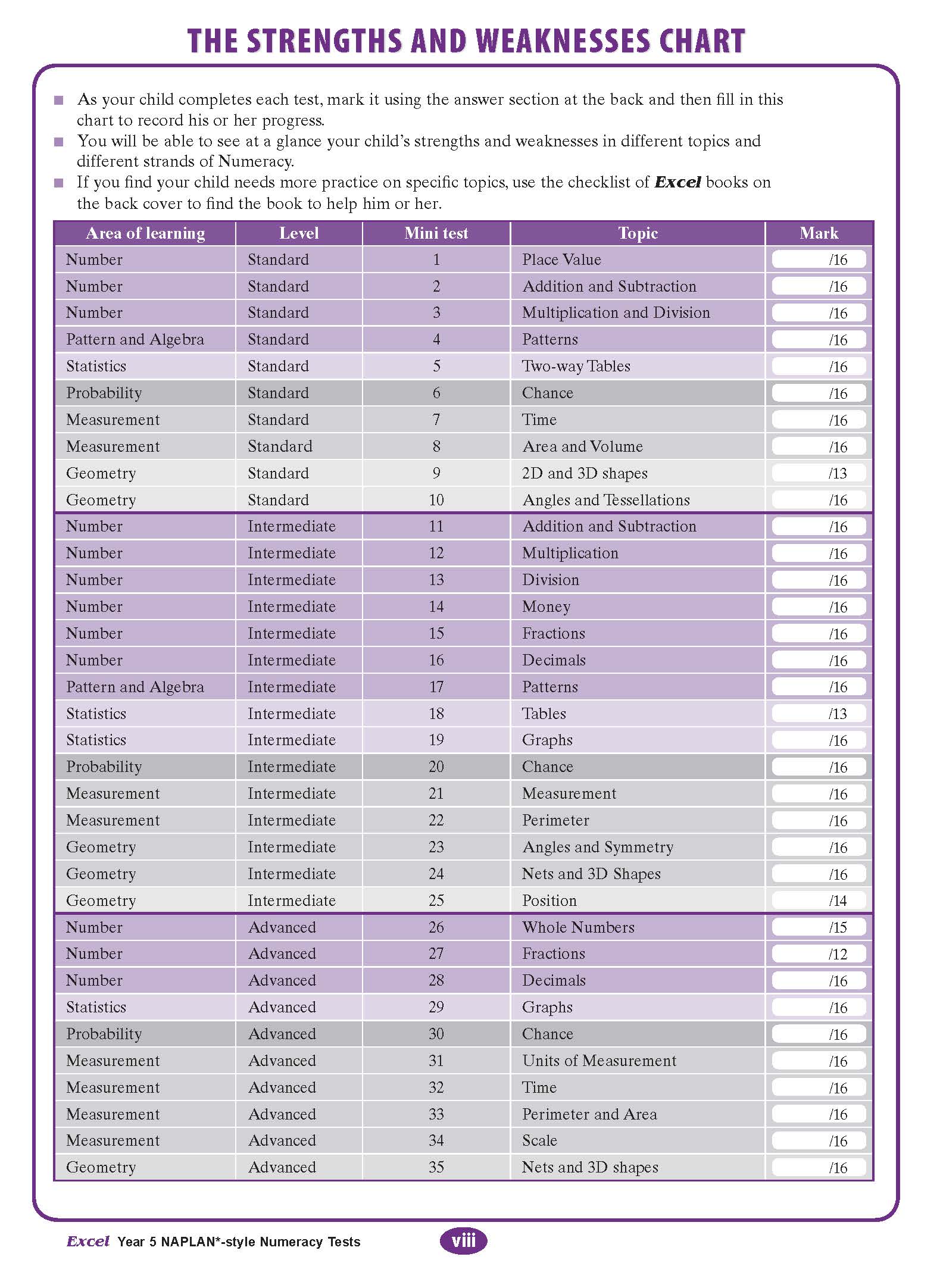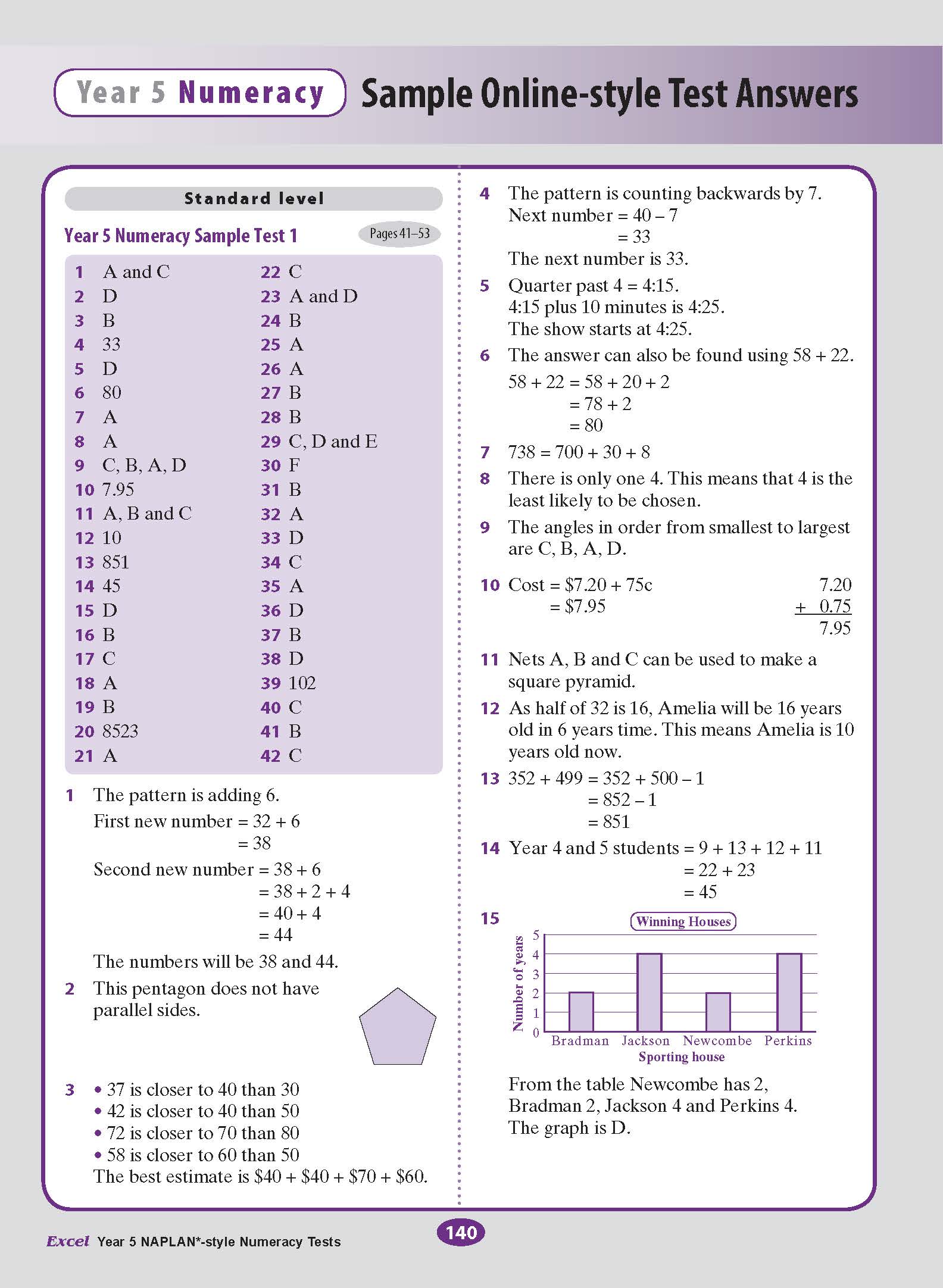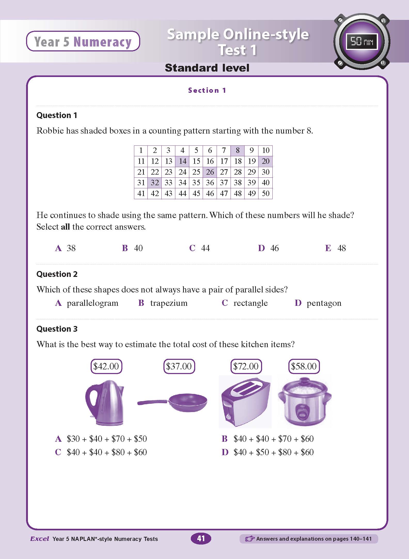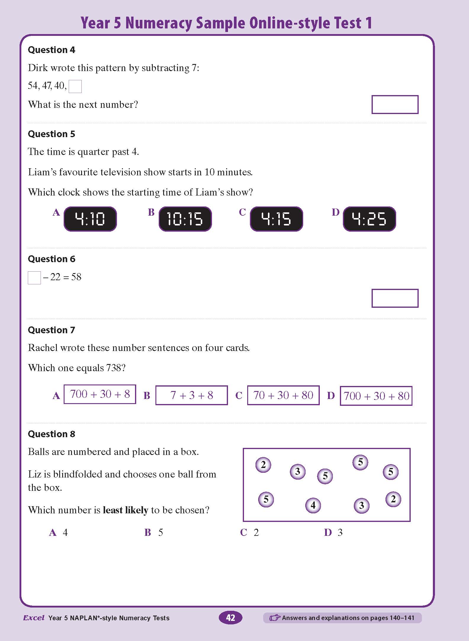 This is easy to use. Broken into six test papers in the different subject fields. Great opportunity for younger students to experience NAPLAN style questioning. Answers are provided and explanations to help improve understanding for future improvement.