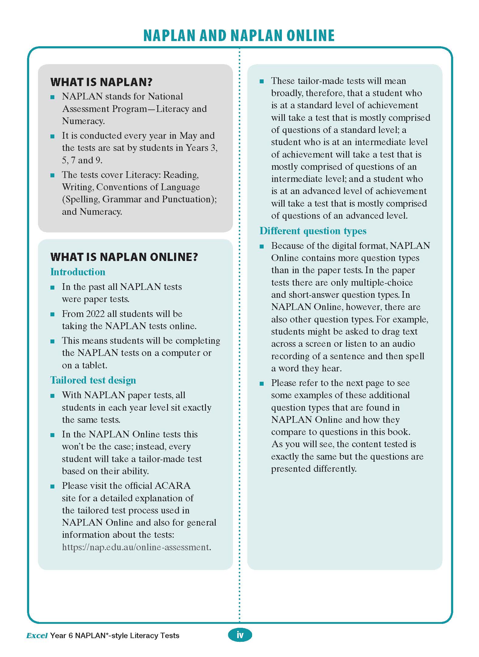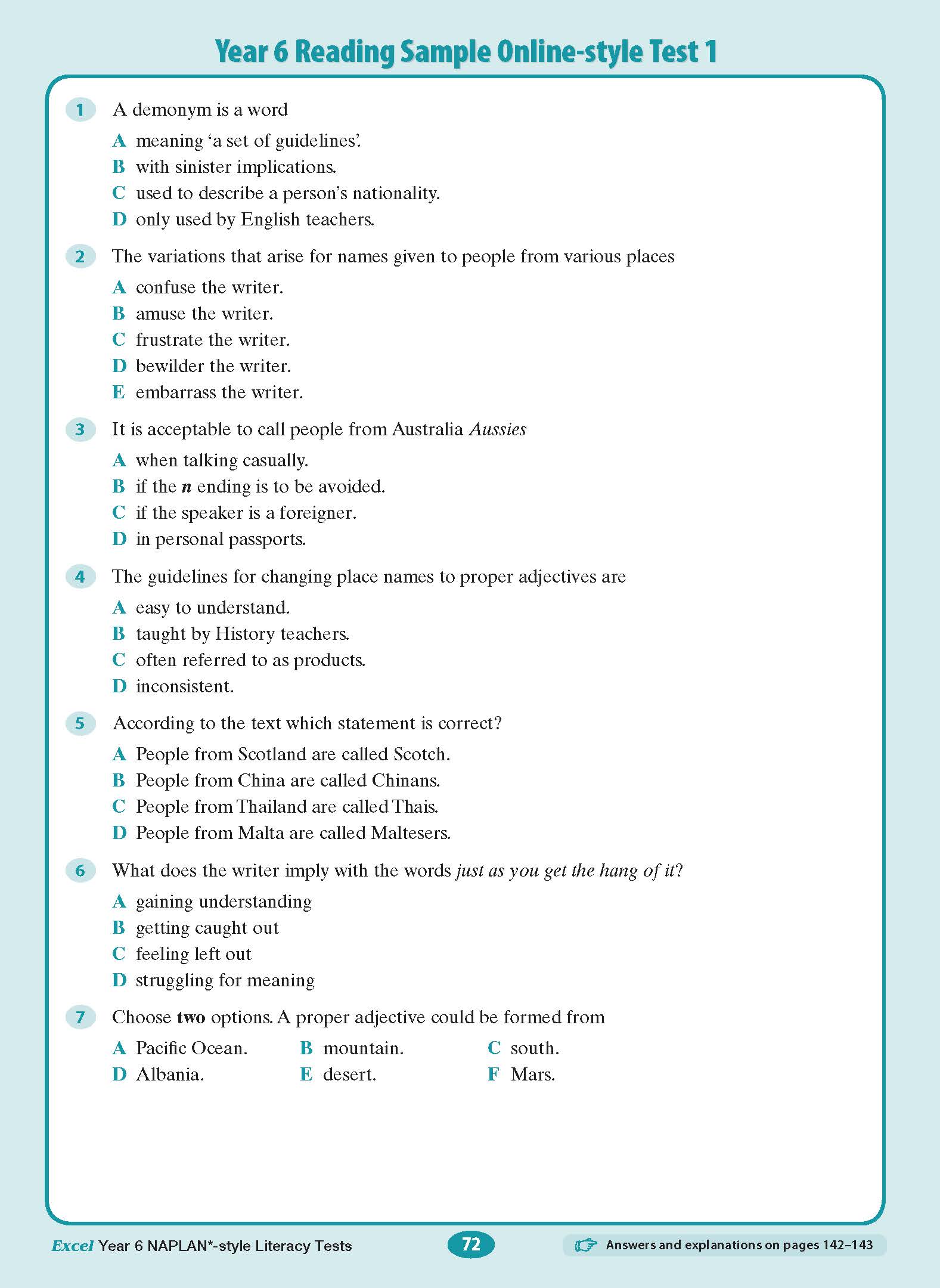 Support your child with complementary Online Practice Tests for Year 6 from Excel Test Zone, Australia's number one online practice site! Your child will become familiar with the NAPLAN Online format with hundreds of questions to practise and detailed answers and explanations for every question!