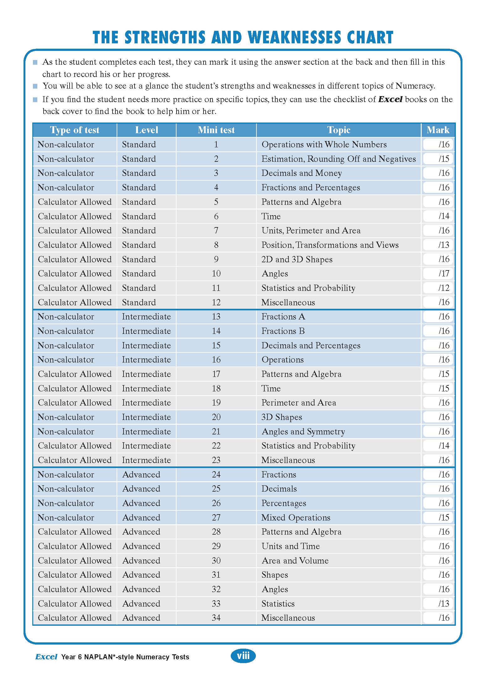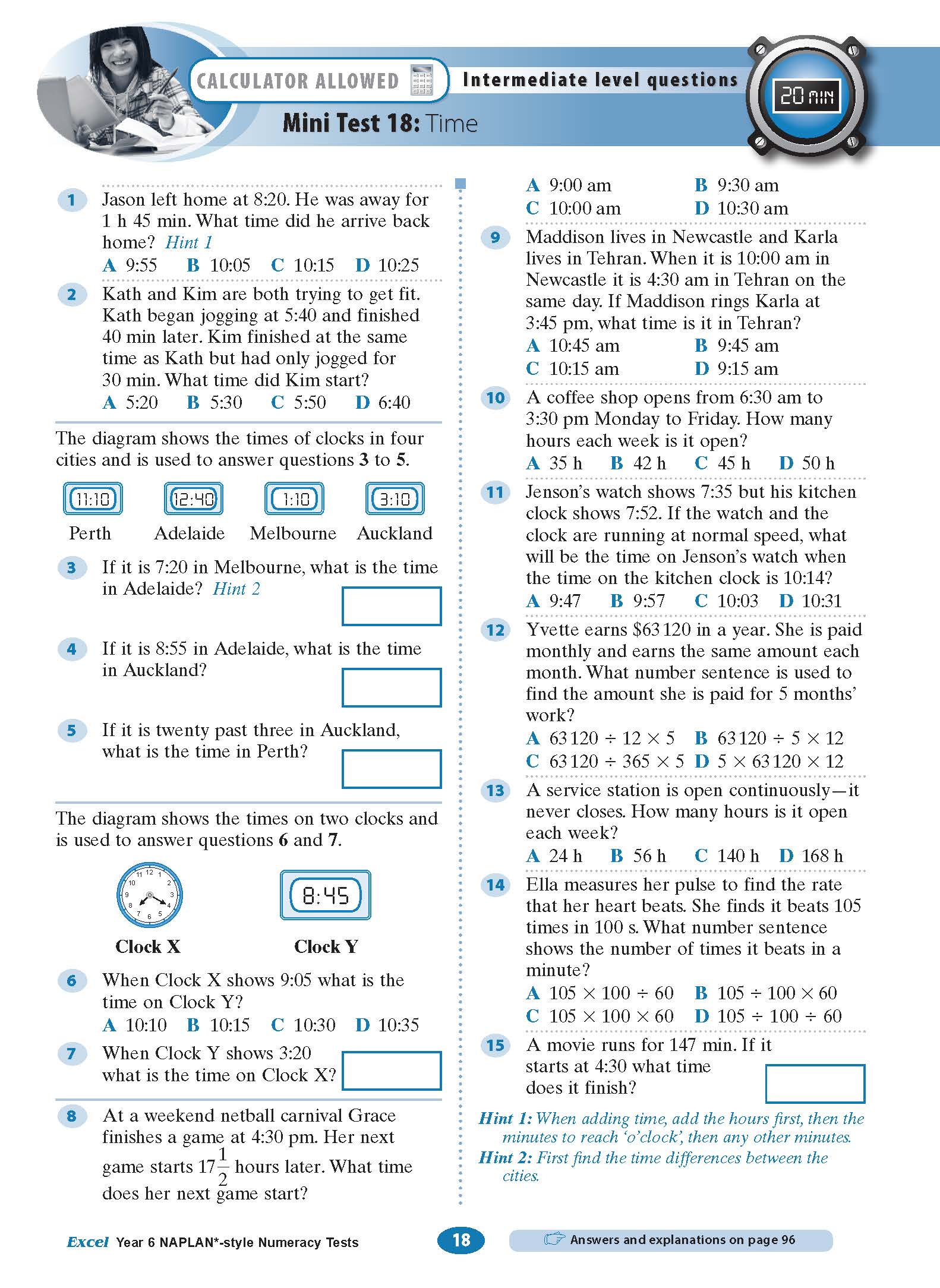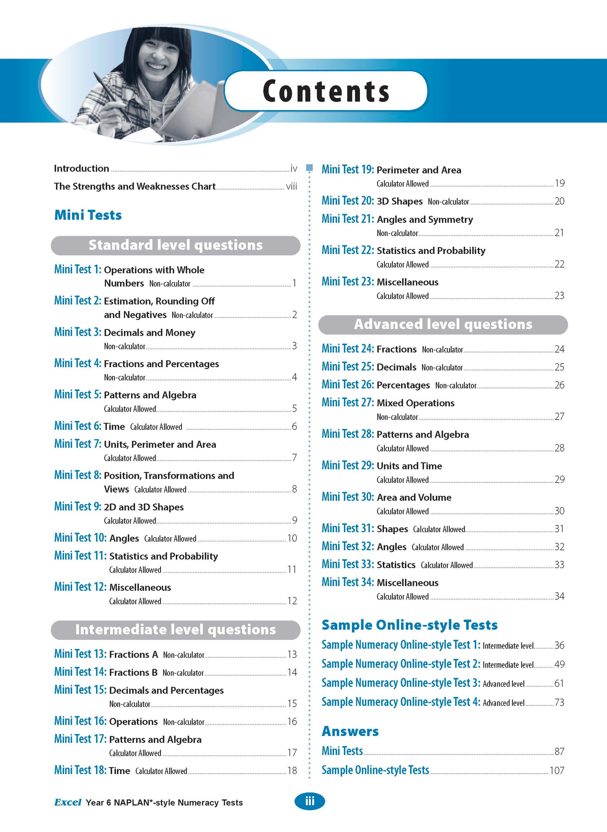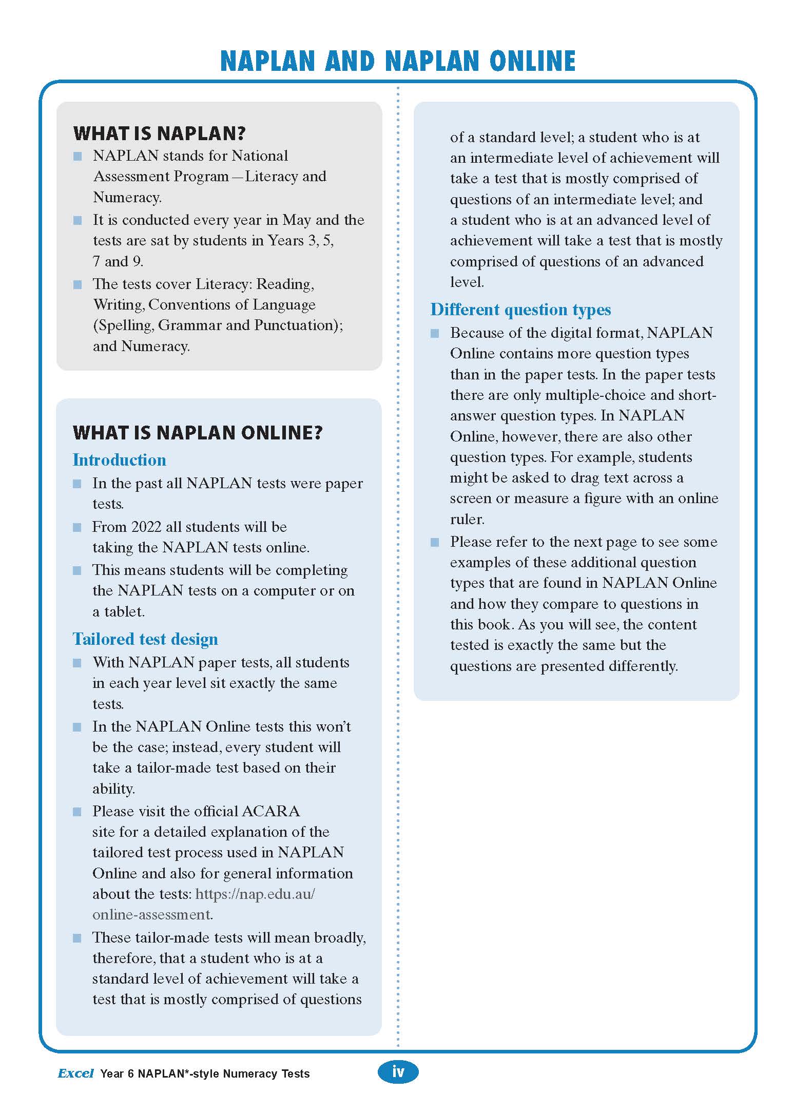 Excel Year 6 NAPLAN*-style Numeracy Tests includes: