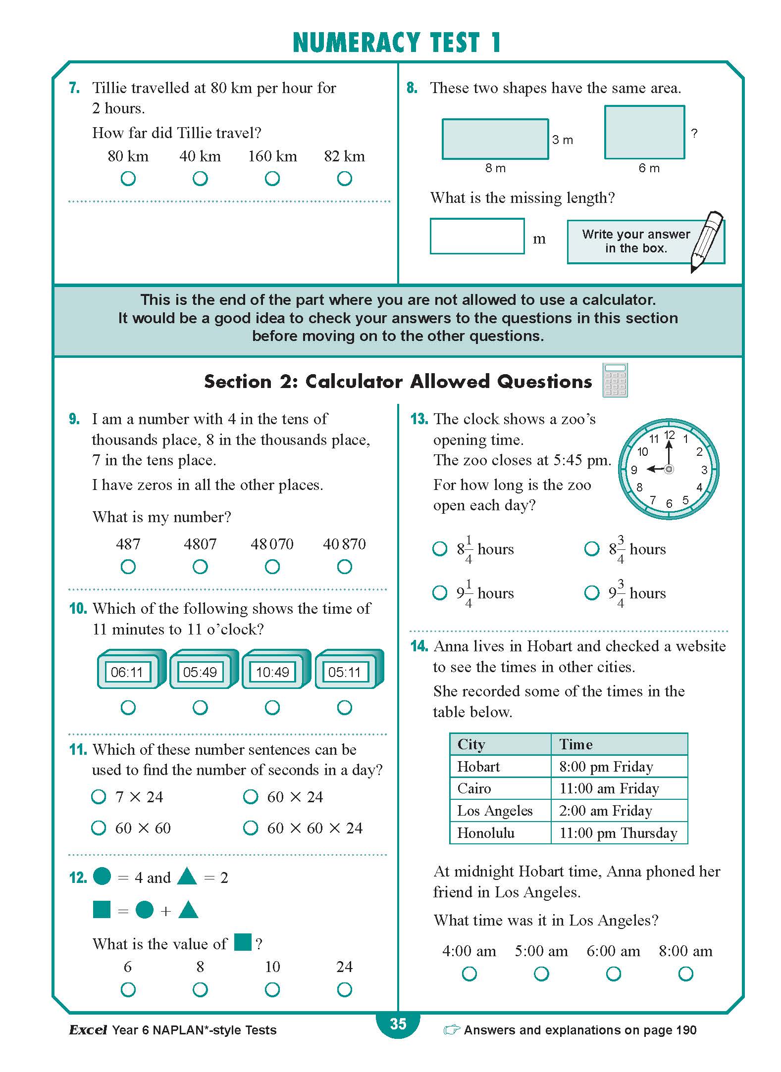 Excel - Year 6 NAPLAN*-style Numeracy Tests includes: